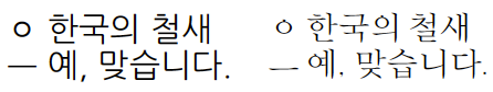 마치 작은 동그라미 형태의 글머리 기호 ‘◦’를 쓸 때 한글 이응(‘ㅇ’)을 쓰거나 긴 줄표 ‘—’를 쓸 때 한글 홀소리 으(‘ㅡ’)를 쓰는 것 같이 비슷한 모양의 한글 자모로 기호를 대체한 것이다.