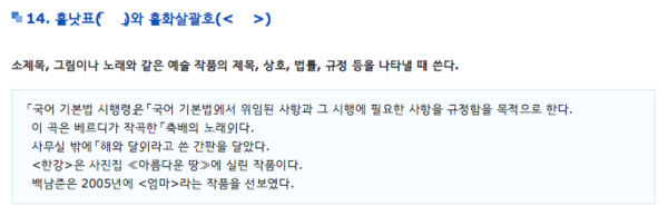 14. 홑낫표(「 」)와 홑화살괄호(< >)
