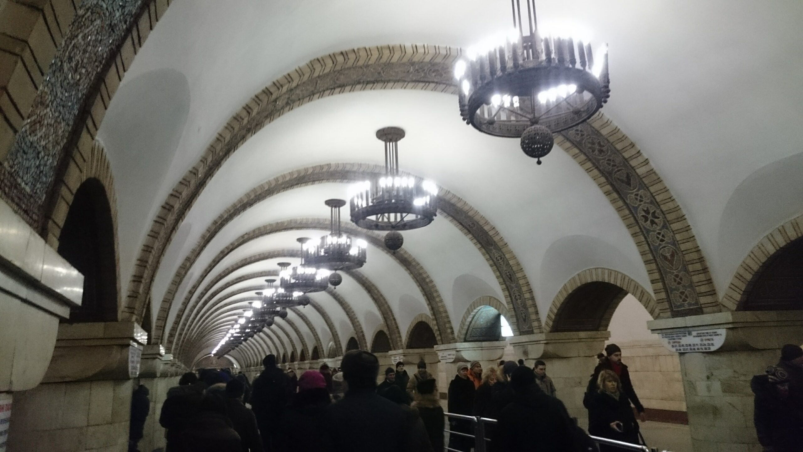 하르키우스카에서 내려서 지하철역이 어디 있는지 찾느라 두리번거리니 같이 버스에서 내린 할아버지와 할머니께서 근처의 지하 통로를 가리키며 ‘메트로(метро metro, 지하철)’라고 일러주셨다. 고맙다고 우크라이나어로 ‘댜쿠유(дякую dyakuyu)’라고 말하고 지하 통로를 따라 역에 들어가 지하철 3호선을 타고 시내로 향했다. 지하철 요금은 4흐리우냐(약 2백원)였다. 원래도 물가가 싸지만 요즘은 우크라이나 동부의 사태 때문에 흐리우냐(гривня hryvnya)의 가치가 폭락했기 때문에 여행객의 입장에서는 유럽이라고 믿기 힘들만큼 저렴한 곳이다.